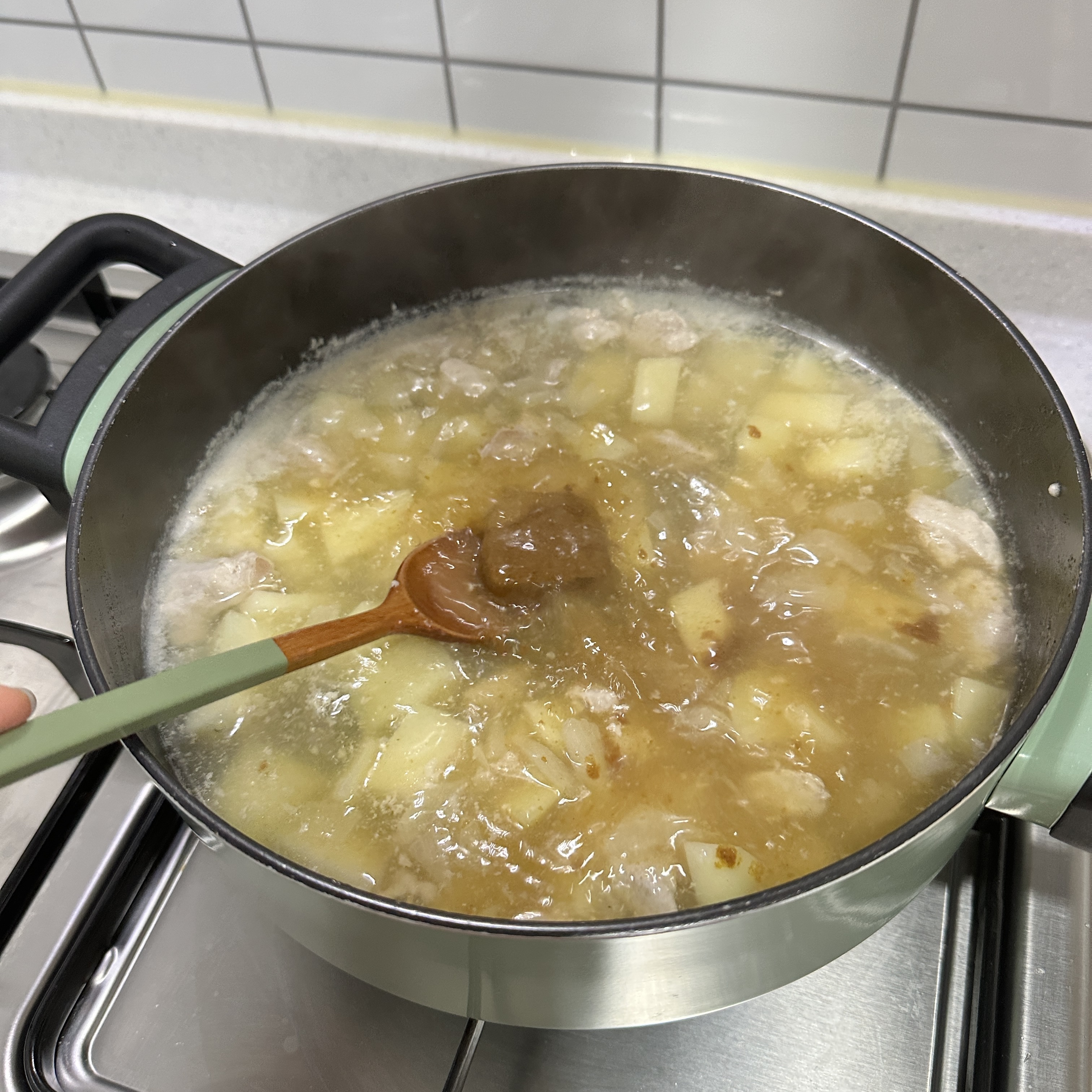 충분하게 카레를 녹인 후 다시 약한 불로 5분 정도 끓인 후 밥 또는 면에 부어 드십시오.