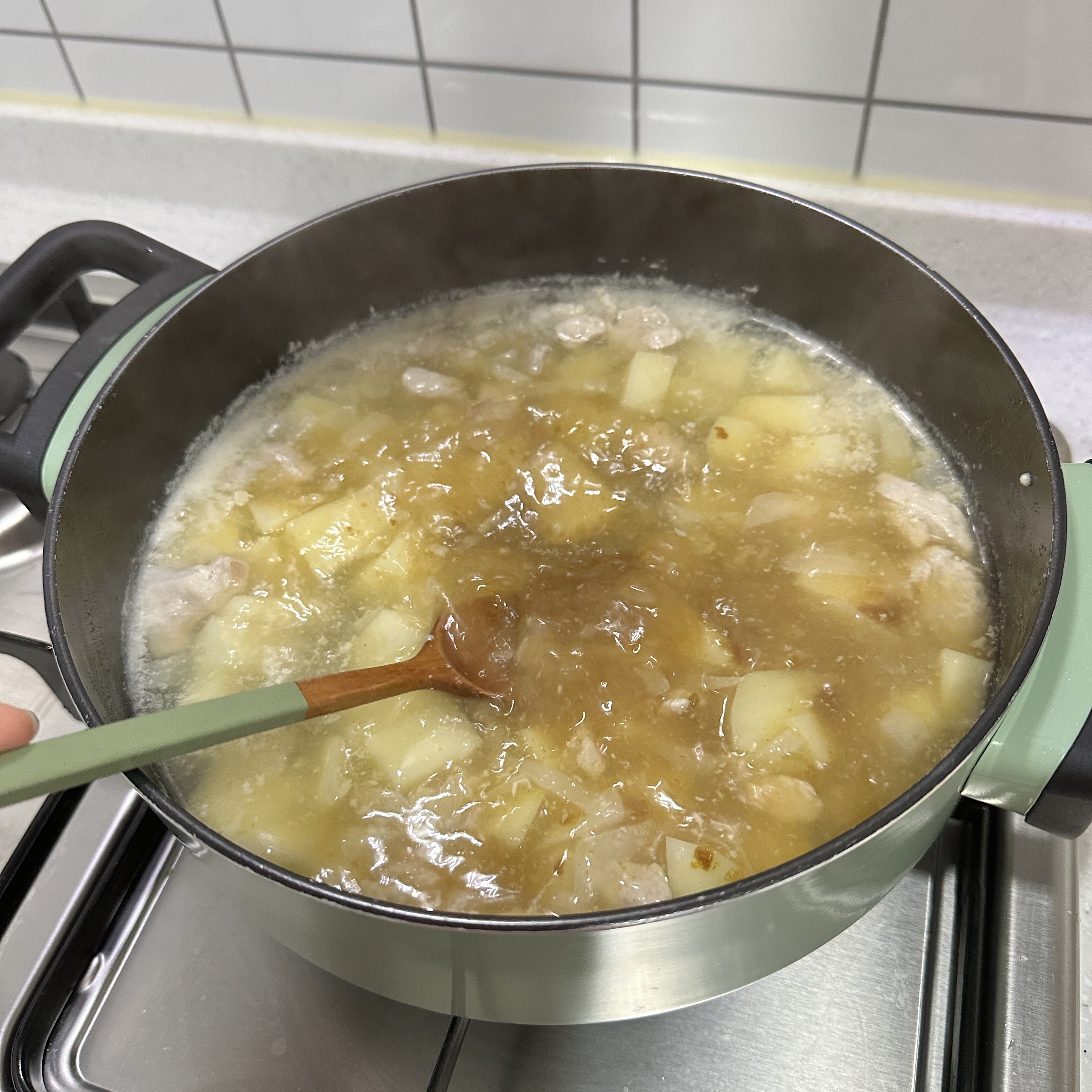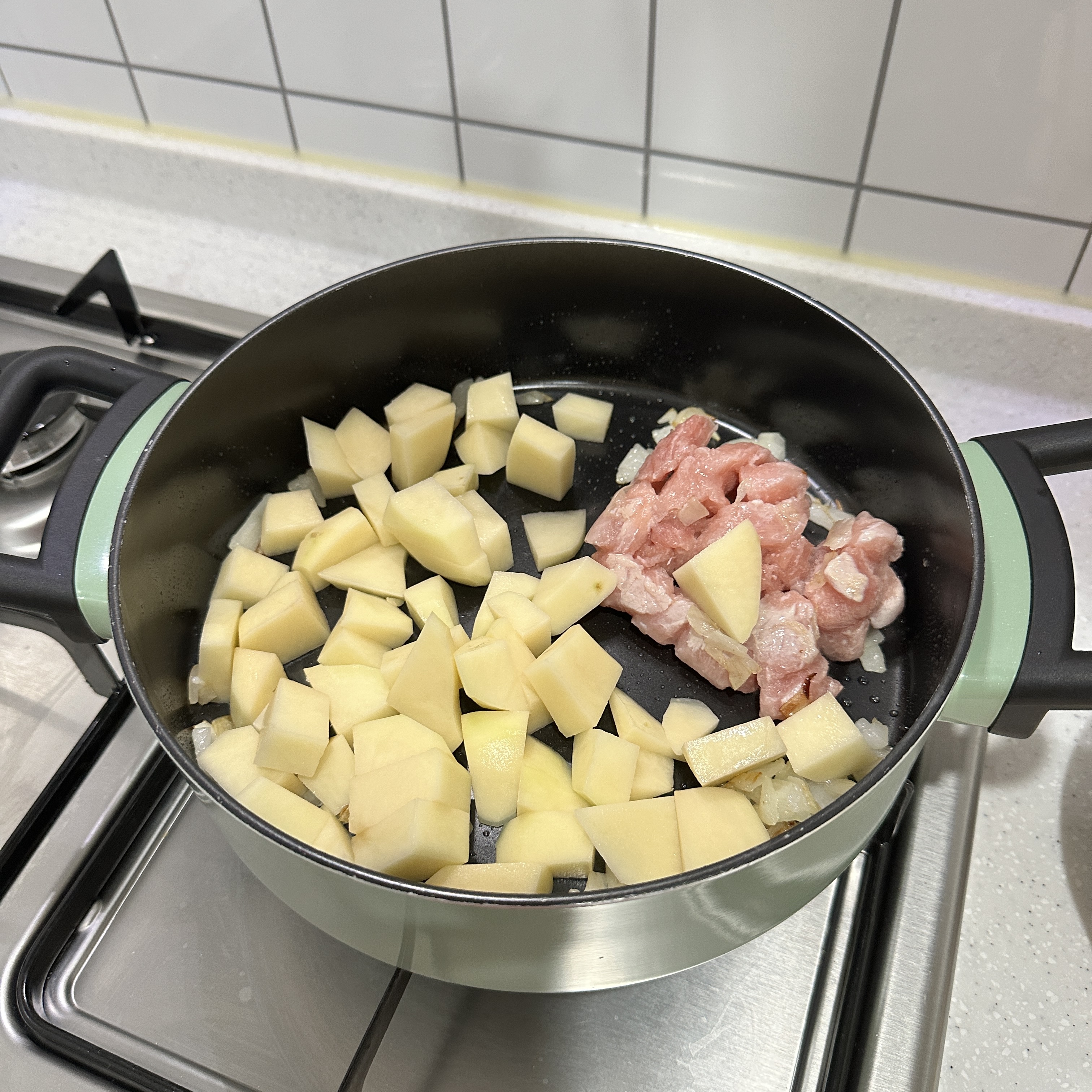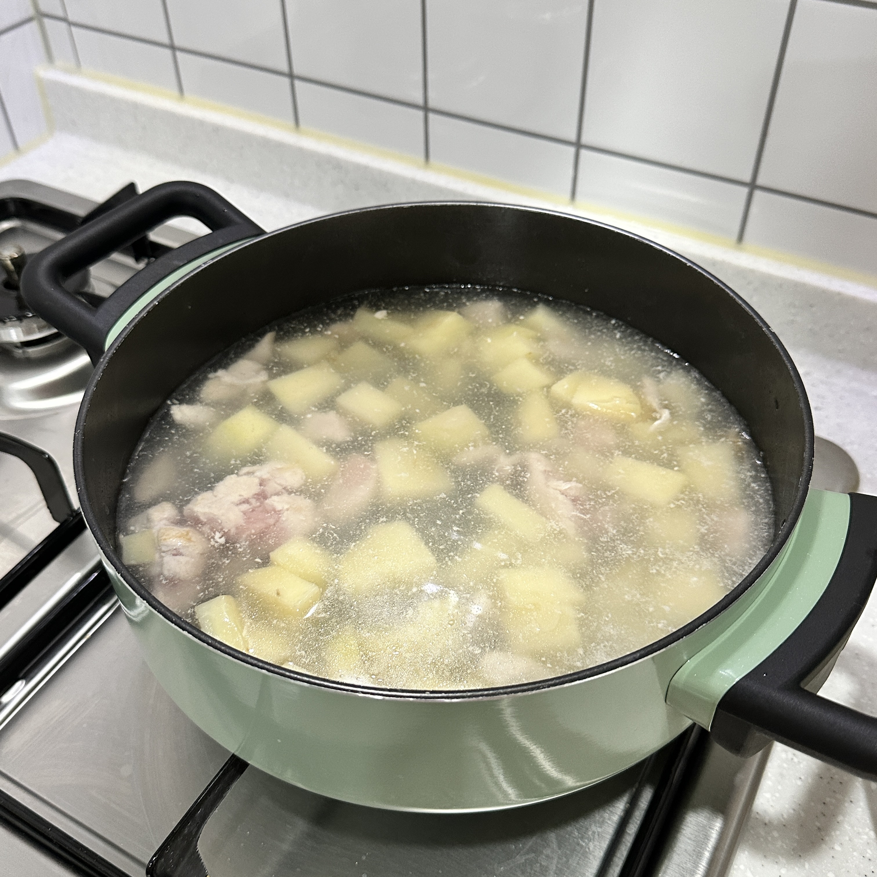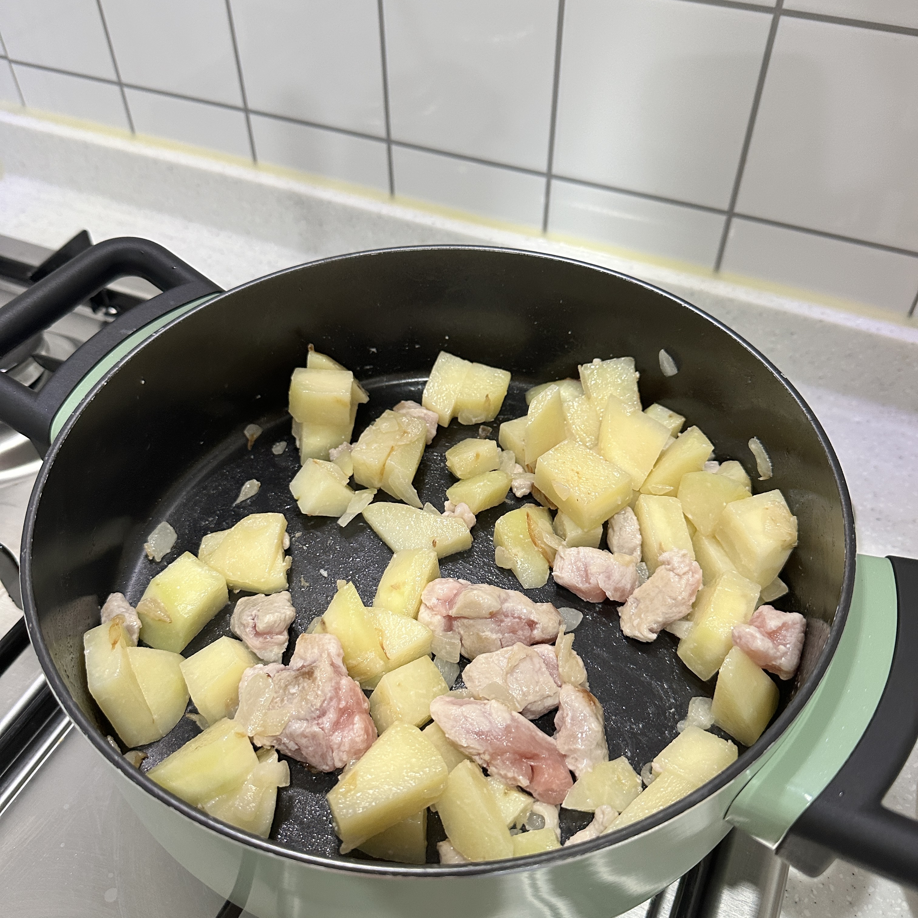 색이 조금씩 변할 때 감자를 넣어줬다.