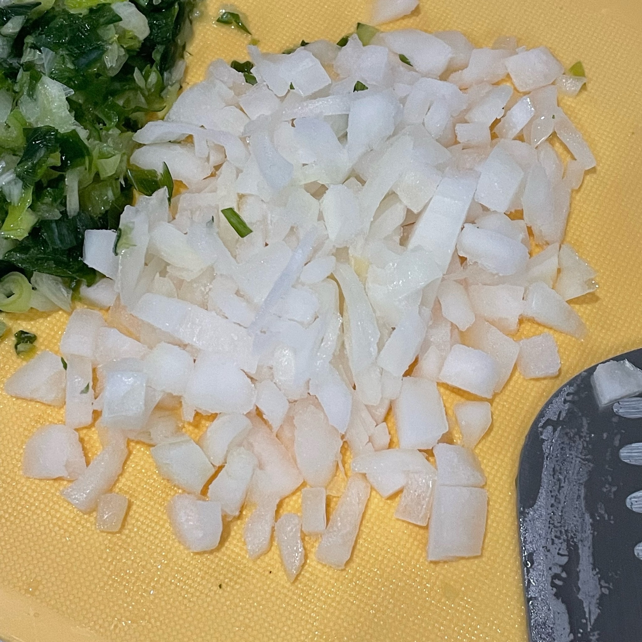 양파도 잘게 다져서 밥에 비벼먹기 좋은 사이즈로 준비