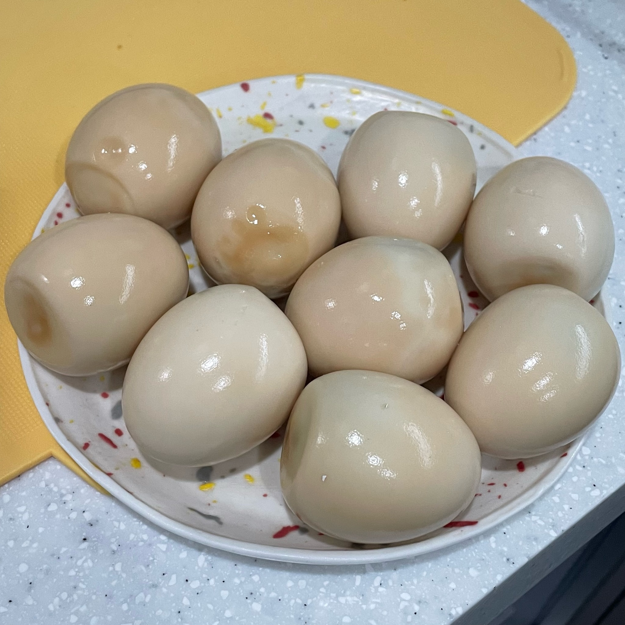 구워놓은 계란은 껍질을 모두 까주고, 절여질 준비